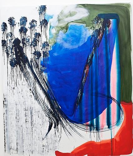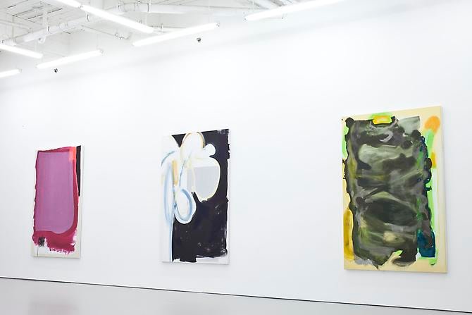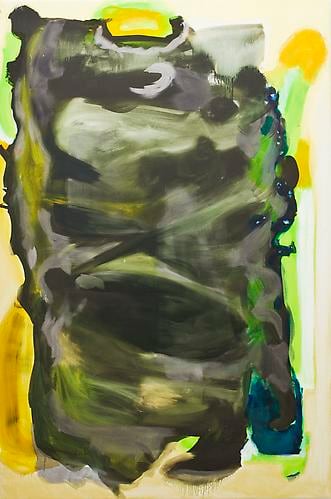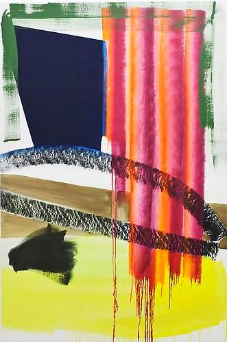 The layers of Monique van Genderen’s paintings interlace a painterly elegance with a complexity and assertiveness of composition. As if shuffling transparencies, the artist builds her collage-like works from overlapping blocks of color that root her works with a flat, graphic formality. Gestural, calligraphic brushstrokes challenge this gravity, yet van Genderen renders these drips and bleeds with a deliberateness that also questions their own haphazardness. In such a way, van Genderen asserts and removes herself as technician from her compositions with pictorial riddles and contradictions. While the openness of exposed canvas and lightness of brushwork invites the viewer into some works, others appear defensive, more reflective than absorptive, demonstrating a comprehensive range. At once transparent and reflective, Monique van Genderen’s mood-shifting paintings are enigmatic and rich beneath their flat veneers.