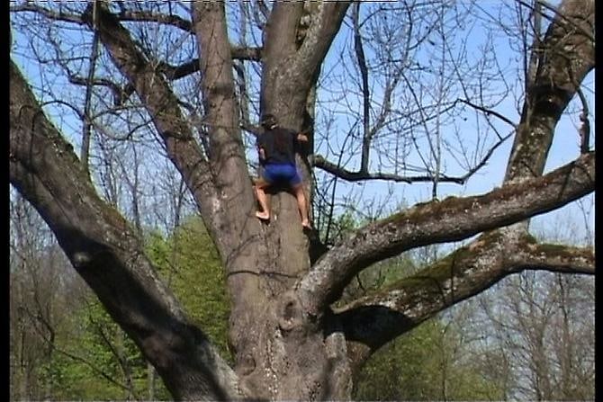 The 13’40” long single-channel projection shows different professional black men dressed in work uniform climbing or trying to climb a tree. One after another, they approach a tree of their choice in different locations (California and Germany) - the camera zooms in and out their action until, if they succeed, the climber reaches a comfortable position in the tree. The paradox between the outdoor setting and the uncanny action of an adult in professional clothes climbing a tree gives a surreal atmosphere: the men do not act based on a director’s script, they simply execute the task of climbing the tree without other apparent motive than a self imposed challenge. The title “Cheshire” references the cat in Alice in Wonderland. Sanford Biggers notes that the enigmatic animal ‘“disappears while spewing riddles or koans (Buddhist paradoxical utterances) until only his bodiless grin remains. He is as invisible as the professional Black man is in the mass media today – but I am also thinking about Black men hanging out in trees, as opposed to being hung from them.”’