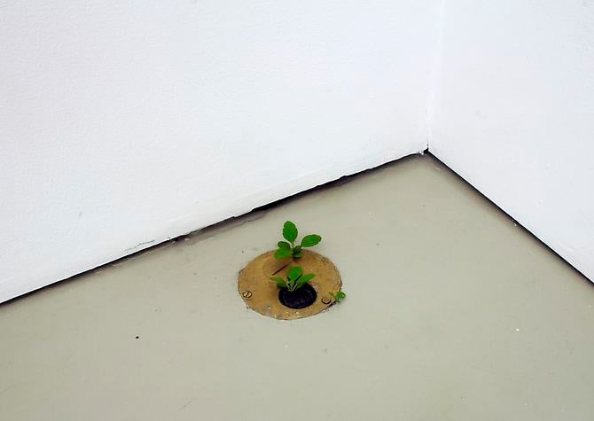 Suda carves delicate plants from magnolia wood before hand-painting them with traditional Japanese pigments to produce hyper-realistic replicas of common plants and flowers. The artist calibrates the installation of his sculptures to engage out-of-the-way spaces and his work finds meaning in the encounters between object, environment, his sculpture and the viewer.